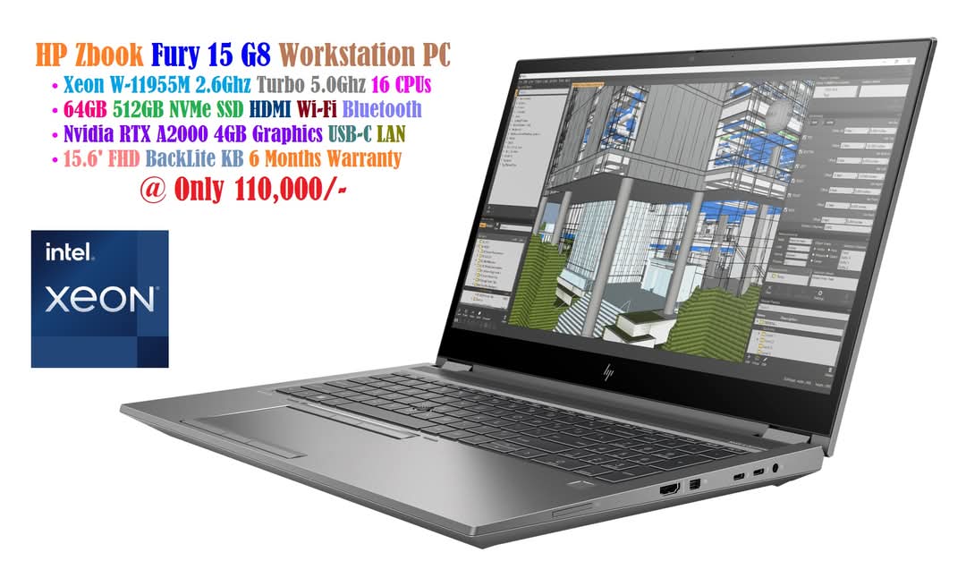 HP ZBook Fury 15 G8 Workstation Laptop Xeon W-11955M 2.6Ghz 16 CPUs 32GB 512GB NVMe SSD 15.6′ FHD 1080P IPS Nvidia RTX A2000 4GB Graphics