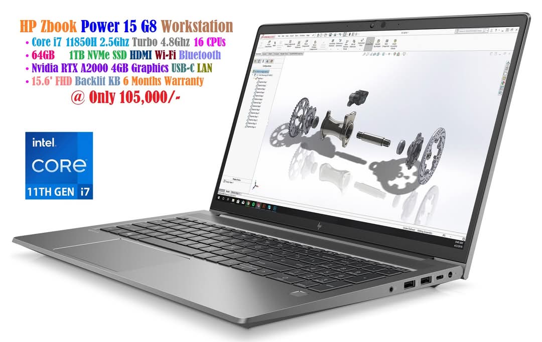 HP Zbook Power 15 G8 Workstation Laptop Core i7 11850H 2.5Ghz 16 CPUs 64GB 1TB NVMe SSD 15.6′ IPS FHD Nvidia RTX A2000 4GB Graphics