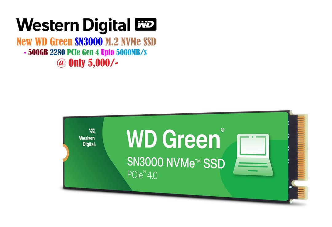 New WD Green 500GB SN3000 Internal PCIe Gen 4×4 SSD NVMe PCIe SSD 2280 Upto 5, 000Mbps Extreme Ultimate Boost Performance