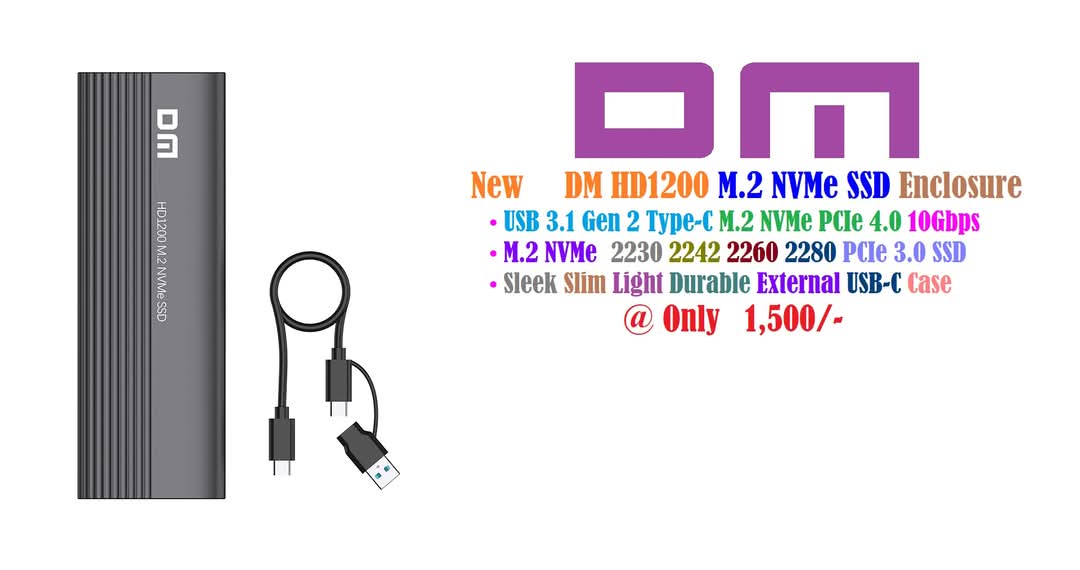 New DM HD1200 M.2 NVMe SSD Portable USB-C SSD Enclosure USB 3.1 Gen 2 Type-C 10Gbps M.2 NVMe PCIe SSD 2230 2242 2260 2280