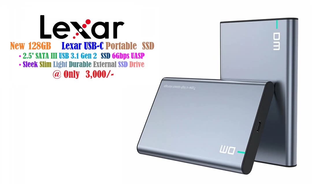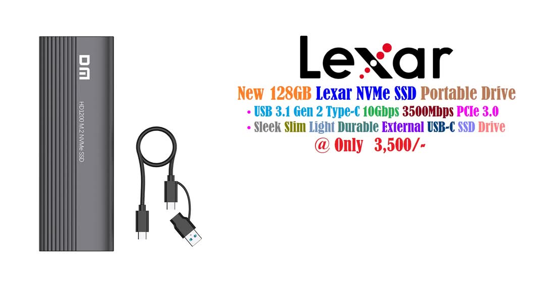 New Lexar 128GB NM620 Portable Drive M.2 NVMe PCIe Gen 3×4 SSD 2280 Upto 3, 500Mbps Sleek Slim Light Durable External USB-C SSD