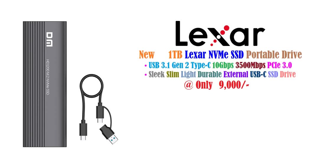 New Lexar 1TB NM620 Portable Drive M.2 NVMe PCIe Gen 3×4 SSD 2280 Upto 3, 500Mbps Sleek Slim Light Durable External USB-C SSD