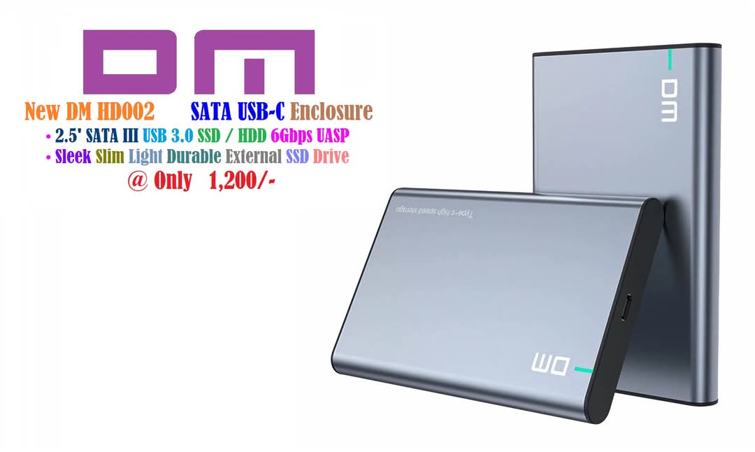 DM HD002 SATA USB-C Enclosure 2.5′ SATA III USB 3.0 SSD HDD 6Gbps UASP Sleek Slim Light Durable External Solid State Drive