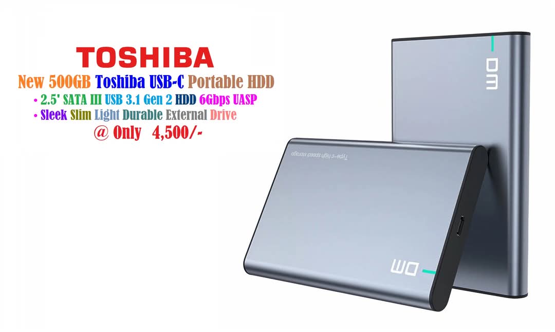 New Toshiba 500GB SATA 6Gbps USB-C HDD Portable Drive 2.5′ USB 3.0 UASP 100Mbps Sleek Slim Light Durable External Hard Disk Drive