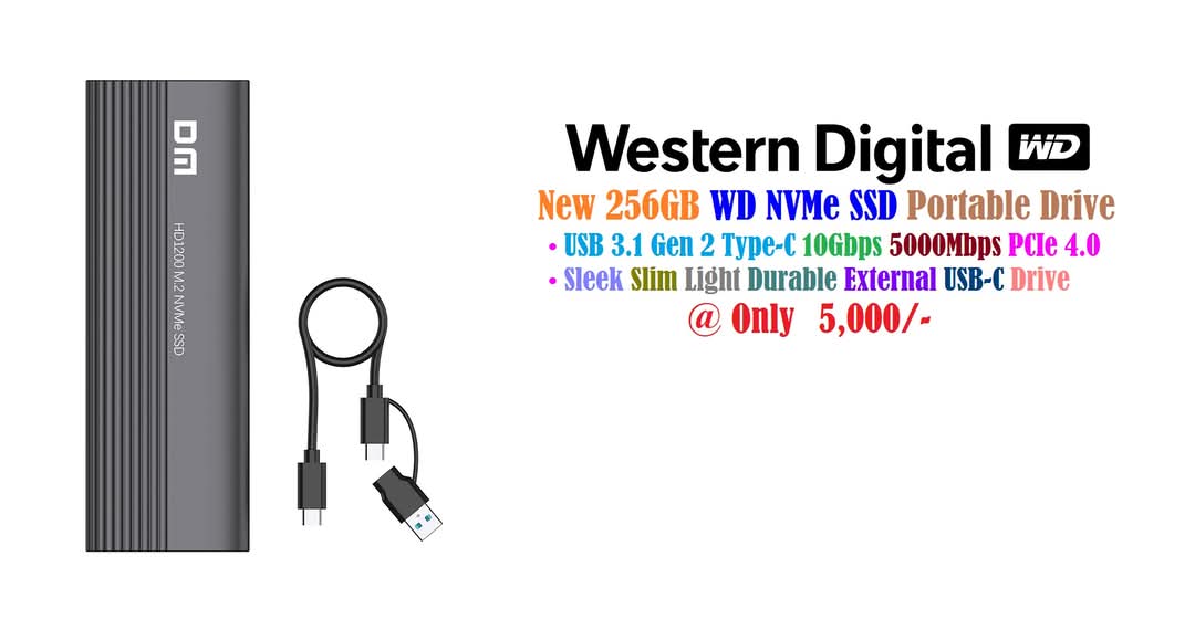 New WD Green 500GB SN3000 Portable Drive M.2 NVMe PCIe Gen 4 SSD 2280 Upto 5, 000Mbps Sleek Slim Light Durable External USB-C SSD
